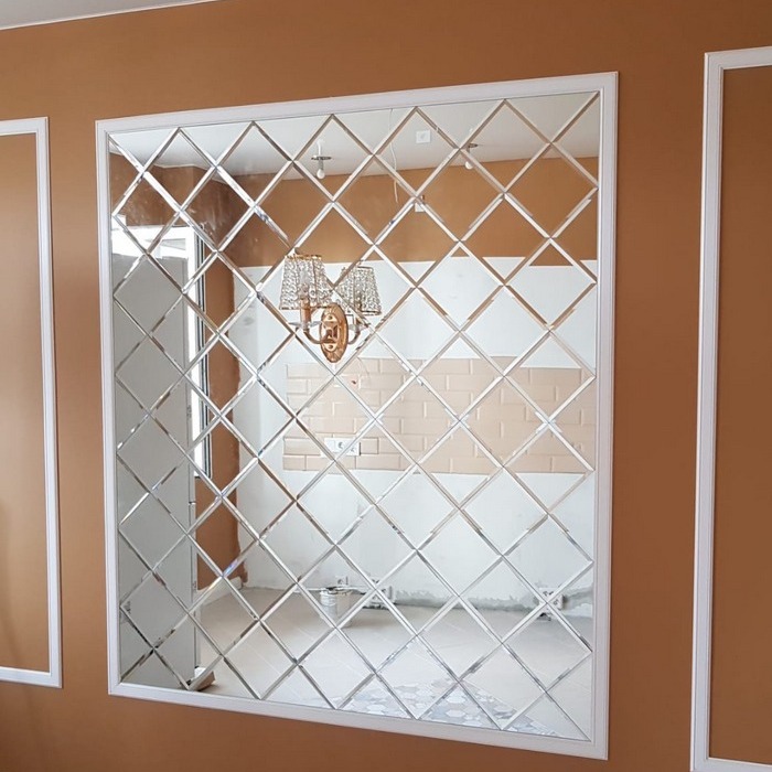 Использована зеркальная плитка "вытянутый ромб" с фацетом.