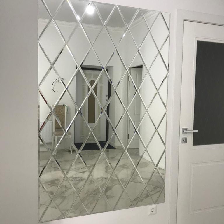 Использована зеркальная плитка "вытянутый ромб" с фацетом.